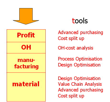 strategy for the cost reduction project. The strategy will indicate what cost areas to focus and with what tools.